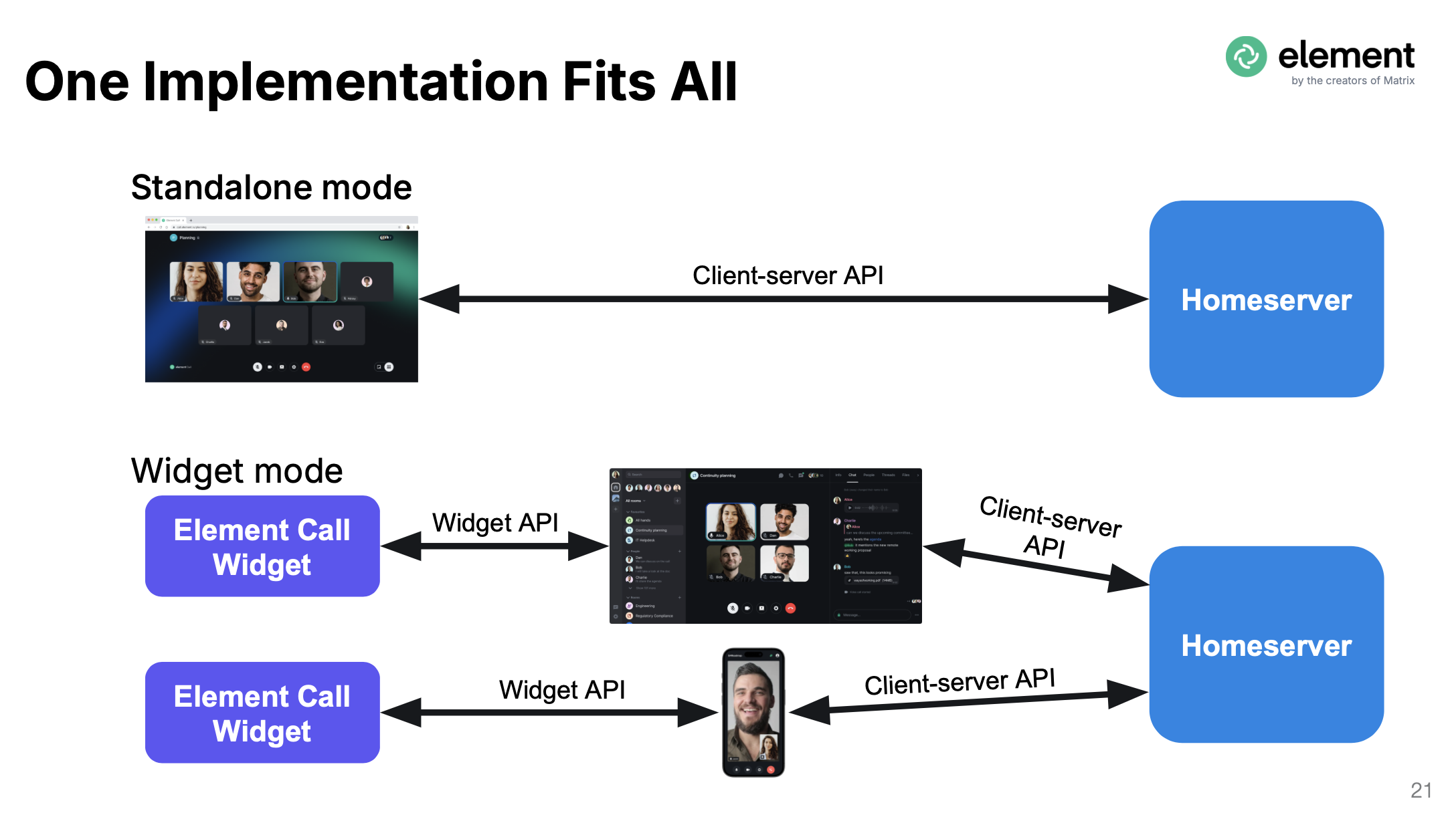 Element-Call fully embraces the potential of MatrixRTC. All